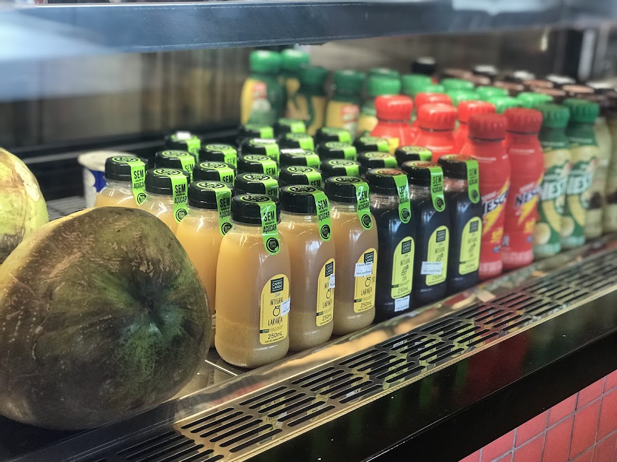 The menu offers a variety of savory snacks typical of the region, including freshly fried pastel, the regionally beloved empadão goiano, and the particularly noted enrolado de queijo, which appears to be a standout for those craving a cheesy, warm treat. Alongside these eats, the bar stocks refreshing fruit juices, traditional cachaças, and some local specialties like pimenta cumari and guariroba in conserves, giving visitors a chance to sample flavors distinctive to Goiás. The presence of salad bars and options like caldos and pamonhas also adds a bit of homestyle comfort to the overall experience.